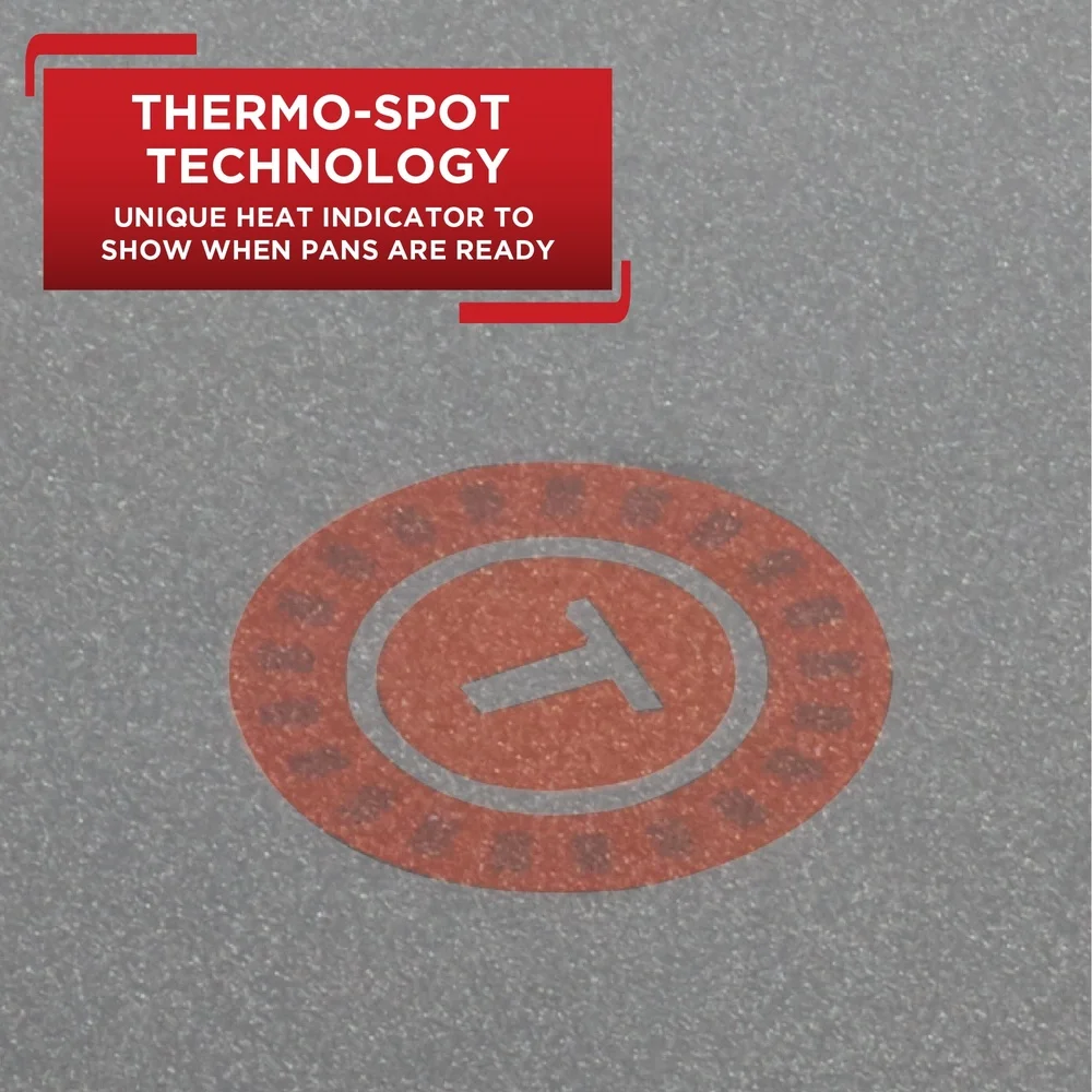 This 11-inch nonstick griddle is perfect for cooking pancakes, eggs, and more. Thermo-Spot technology indicates when the pan is preheated for optimal cooking. The even heat base ensures consistent results across the entire surface. Comfortable grip handle provides safety and control during cooking. Nonstick coating allows easy food release with minimal oil. Dishwasher safe design makes cleanup fast and convenient. Lightweight and easy to maneuver for everyday use. Ideal for home kitchens, breakfast bars, or small apartments. Durable construction ensures long-lasting performance. The flat surface is perfect for flipping pancakes and grilling sandwiches. Suitable for gas, electric, or induction stovetops. This griddle combines convenience, safety, and performance for all your cooking needs.