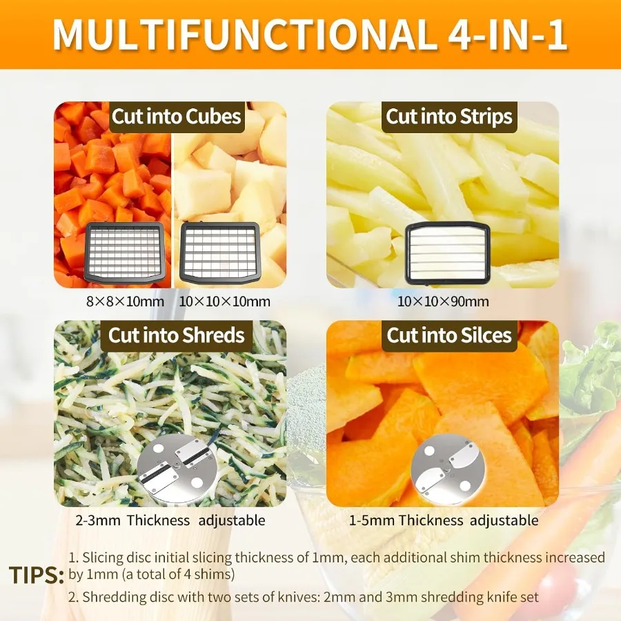 This 4-in-1 Electric Vegetable Chopper is designed to simplify all your kitchen prep tasks. With a 200W motor, it delivers strong and consistent performance for everyday cooking. The multifunction blades allow for slicing, shredding, dicing, and strip-cutting in one compact unit. Its wide feed opening accommodates various vegetables and fruits with ease. The powerful cutting action ensures uniform results for salads, stir-fries, soups, and more. A detachable container collects ingredients neatly for mess-free cooking. All accessories are easy to remove, making cleaning quick and convenient. The compact design saves valuable counter and storage space. A non-slip base keeps the unit stable during operation. Its durable construction is built for long-term use in busy kitchens. This food processor reduces prep time while improving accuracy and consistency. It’s an ideal tool for anyone who wants fast, effortless, and versatile vegetable preparation.