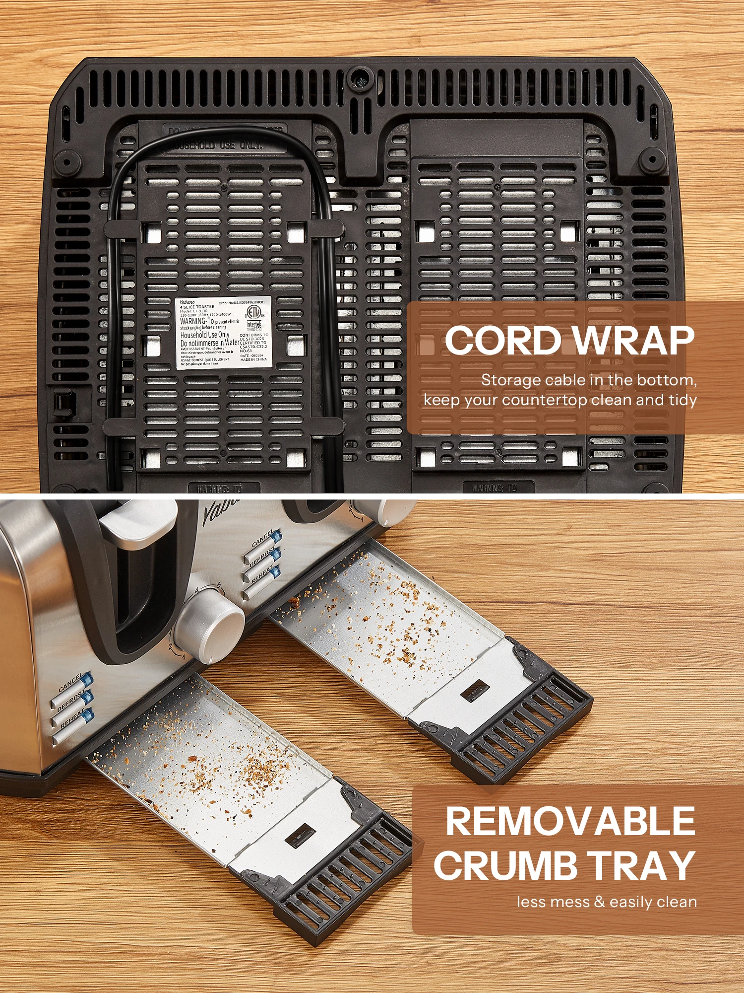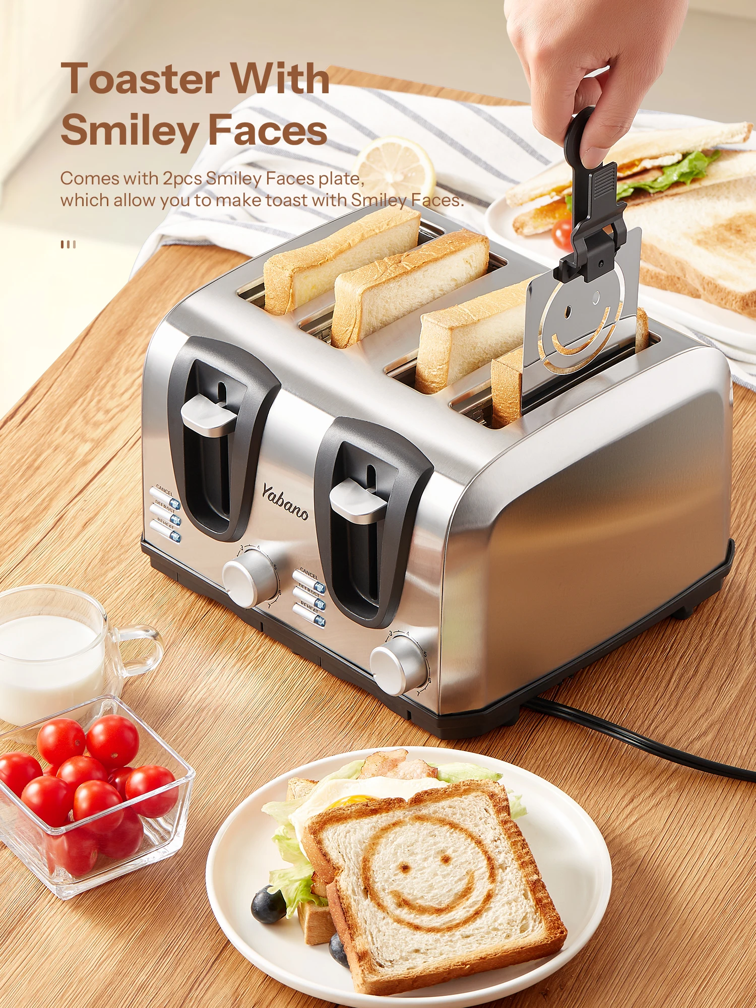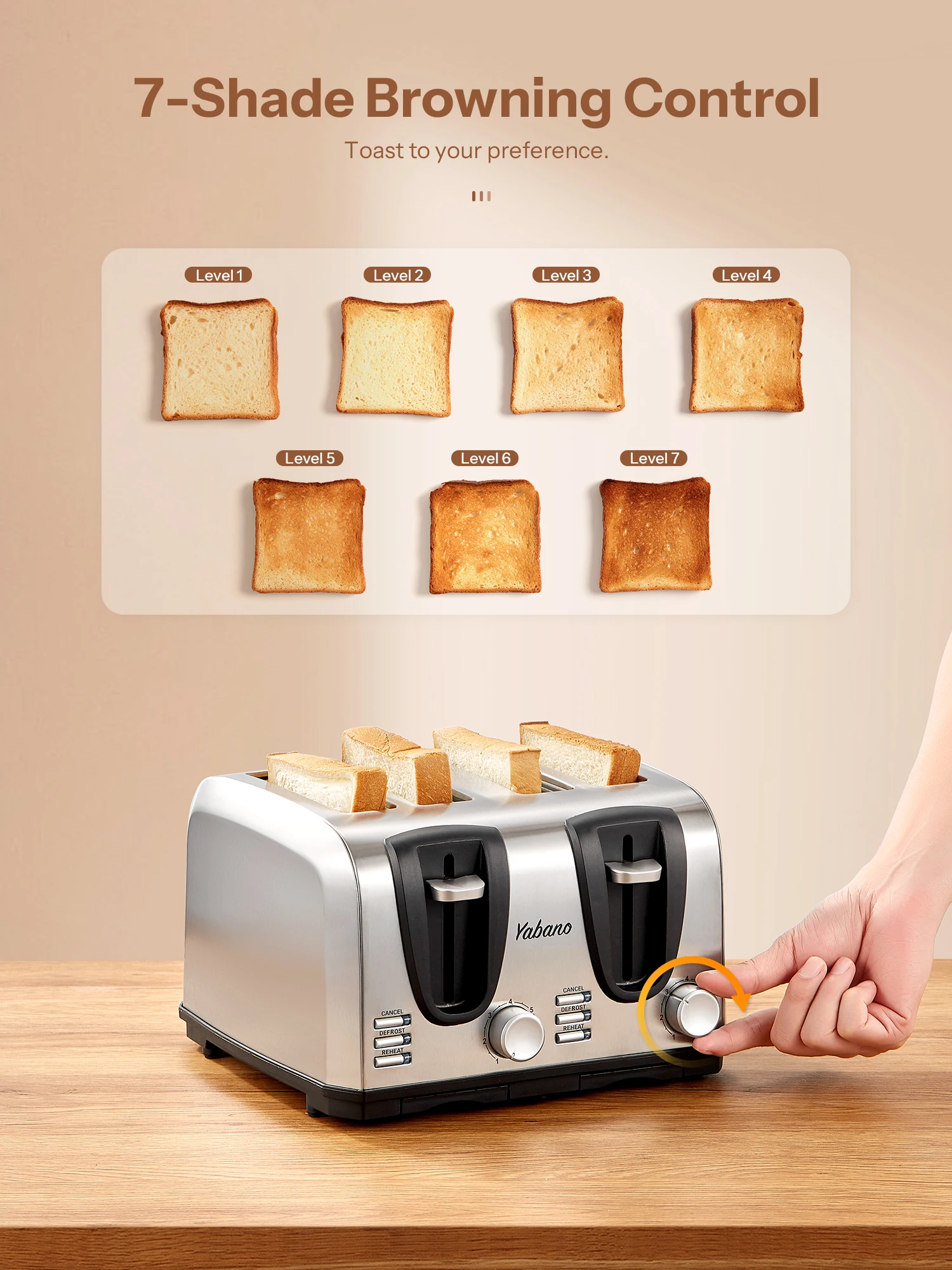 This 4-slice toaster is perfect for busy kitchens and large households. Features extra-wide slots to accommodate thick bread, bagels, and pastries. Offers 7 adjustable shade settings for perfect toasting every time. Includes defrost and reheat functions for added convenience. Sleek design adds style to any countertop. Durable construction ensures long-lasting performance. Easy-to-use controls make operation simple for everyone. Removable crumb tray allows quick and easy cleaning. Compact and efficient, ideal for home, office, or dorm use. Perfect for breakfast, brunch, or snack time. Provides even and consistent toasting results. This wide-slot toaster combines versatility, durability, and convenience for all your toasting needs.