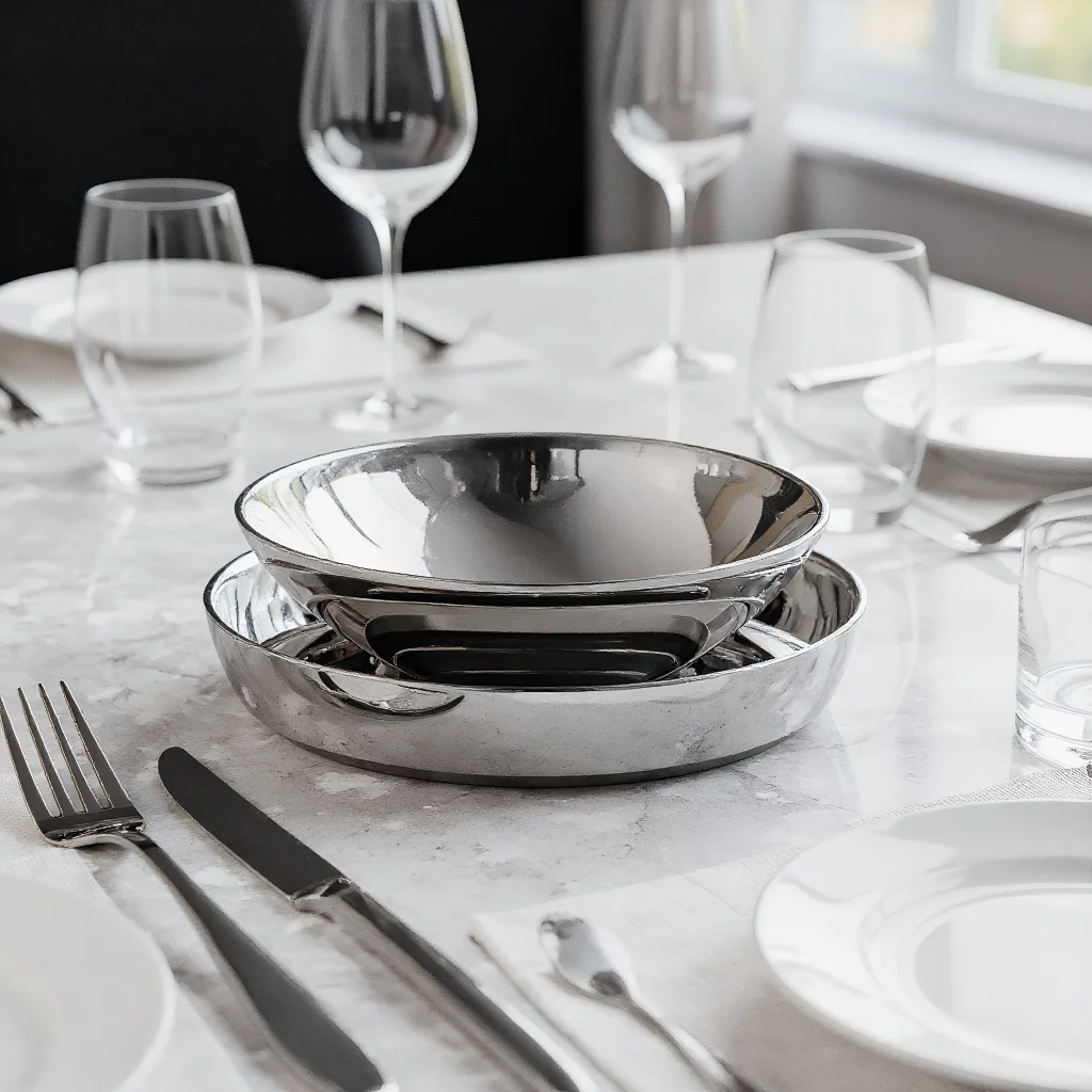 This 7-piece stainless steel tableware set is perfect for both home and commercial use. It includes bowls and plates designed for versatile dining needs. Each piece is crafted from high-quality stainless steel for durability and longevity. The smooth, polished surface adds a modern, elegant touch to any table. The set is resistant to rust and corrosion, ensuring long-term use. Its lightweight design makes it easy to handle and serve from. Each item is simple to clean, making everyday use convenient. The included creative gift box adds a thoughtful touch for gifting. This set is ideal for family meals, parties, or catering events. Its sleek design fits seamlessly into any kitchen or dining setup. The durable construction withstands frequent use in busy environments. This stainless steel tableware set combines functionality, style, and practicality in one complete package.