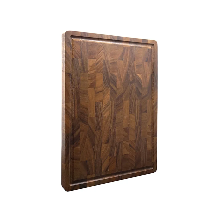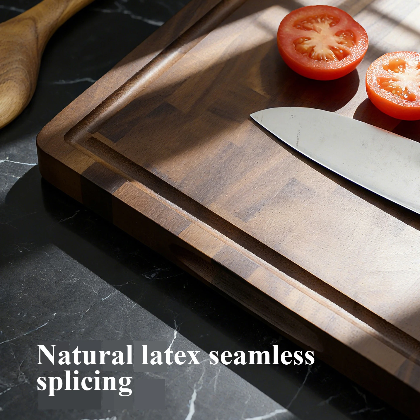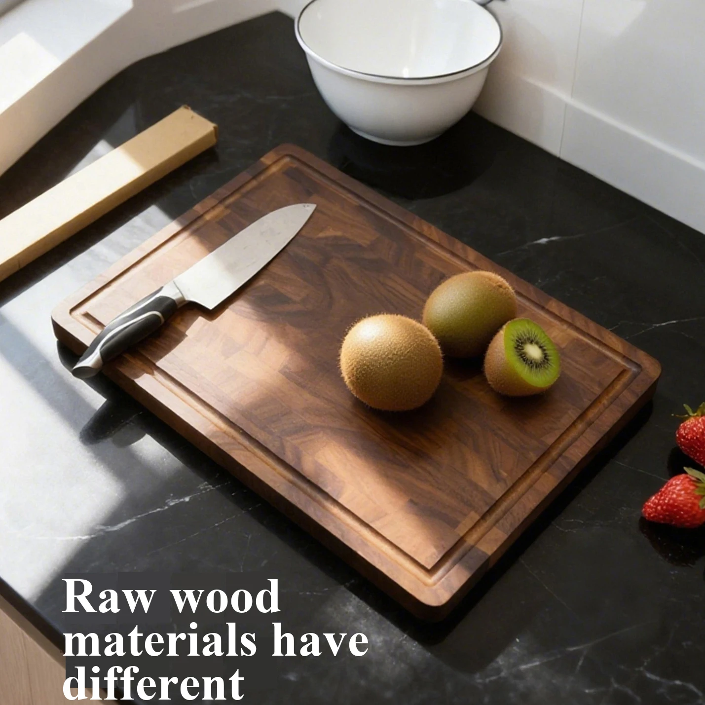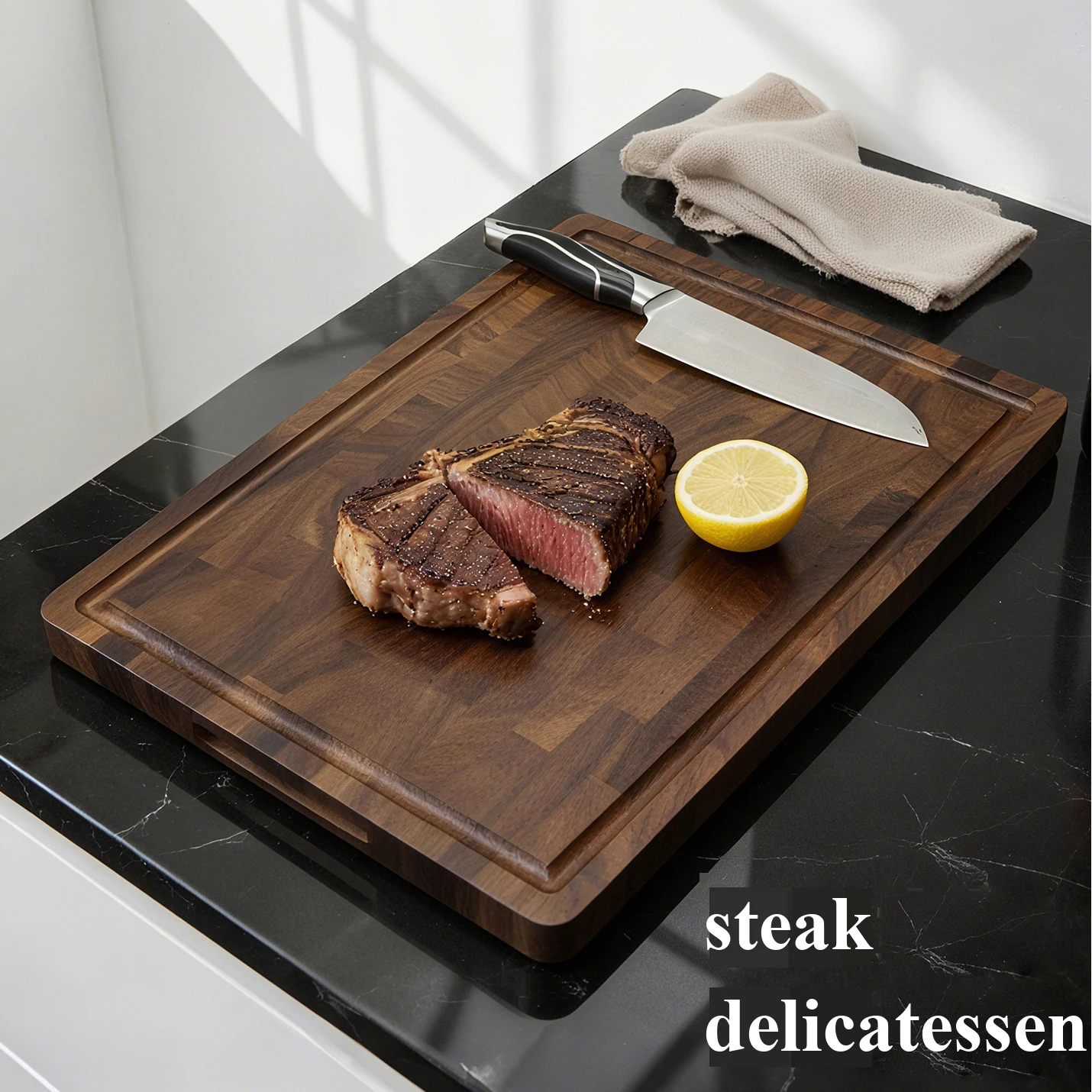 This black walnut wood cutting board brings elegance and durability to your kitchen. Its rich natural grain makes it both functional and visually appealing. The vertical design enhances strength and minimizes deformation. A built-in anti-slip base keeps the board stable during cutting. The hardwood surface is ideal for chopping vegetables, meat, and fruits. It is gentle on knives while providing excellent cutting resistance. The board is suitable for home kitchens, restaurants, and food prep areas. Walnut wood is known for its long-lasting durability. Its smooth, polished finish makes cleaning easy. The board resists moisture when properly maintained. It adds a touch of luxury to any cooking space. This cutting board is a premium choice for everyday cooking or professional use.