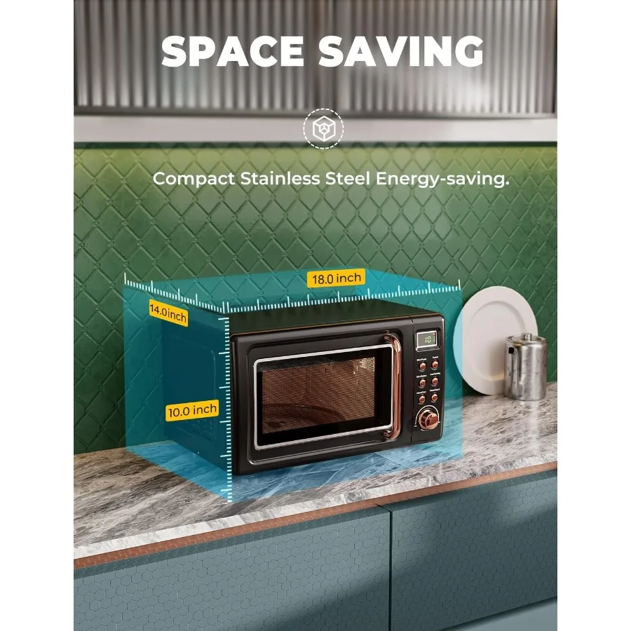 The Compact Retro Countertop Microwave is perfect for small kitchens, apartments, or dorm rooms. With a 0.7 cubic foot capacity, it efficiently handles everyday cooking and reheating needs. The 700W power ensures fast and even cooking for a variety of meals. It features 8 automatic cooking settings for quick preparation of common dishes. The retro design adds a stylish touch to any kitchen countertop. Easy-to-use digital controls make operation simple and convenient. Ideal for reheating leftovers, defrosting frozen foods, or cooking small meals. Its compact size saves valuable countertop space while still offering versatility. The microwave includes safety features for secure use in homes with children. Its durable construction ensures long-lasting performance. Lightweight and portable, it is easy to move or store as needed. Upgrade your kitchen with this efficient, stylish, and user-friendly compact microwave oven.