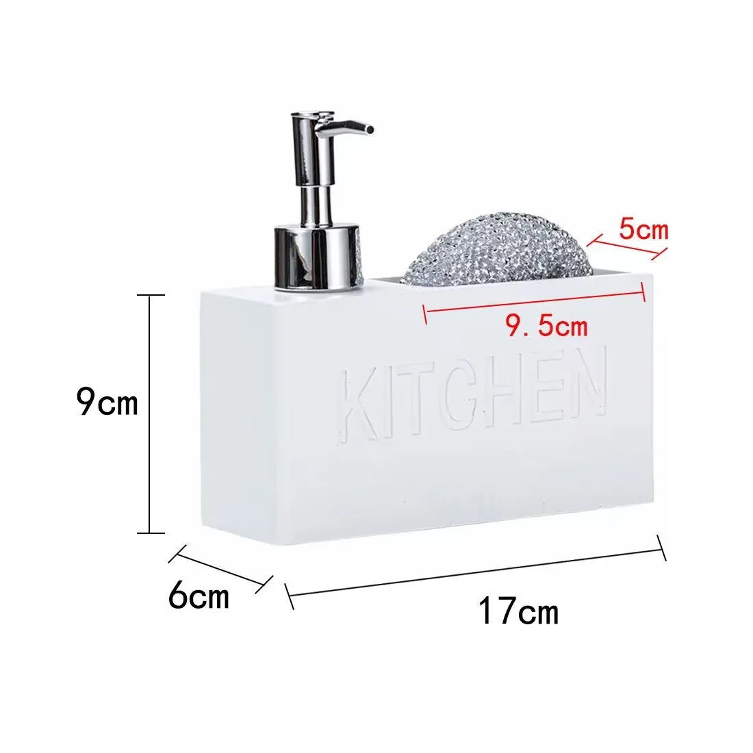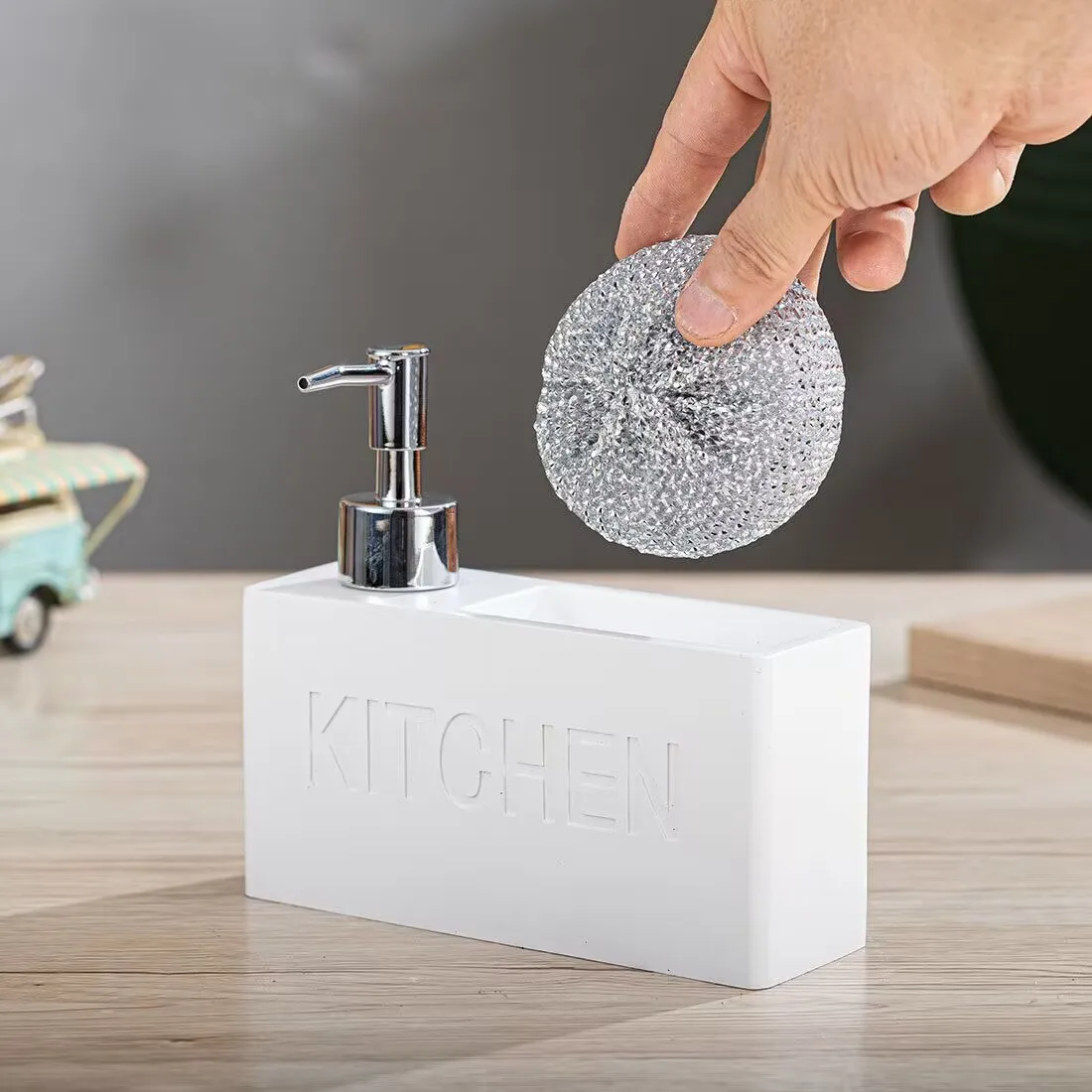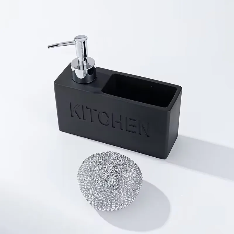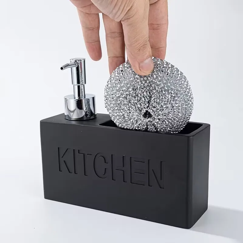 This modern soap dispenser set is perfect for organizing your kitchen sink area. It combines a liquid hand soap dispenser with holders for brushes, sponges, and scrubbers. The compact design keeps cleaning tools neatly stored and accessible. Its durable construction ensures long-lasting use in daily kitchen tasks. The ergonomic pump dispenses the right amount of soap with each press. The integrated brush and sponge holders keep items dry and hygienic. The sleek, contemporary design fits seamlessly with modern kitchen décor. Refilling the soap dispenser is simple and convenient. Cleaning and maintaining the set is easy for everyday use. It is suitable for home kitchens, apartments, or office sinks. The multifunctional design reduces clutter and maximizes countertop space. This soap dispenser set combines practicality, style, and convenience for efficient kitchen organization.