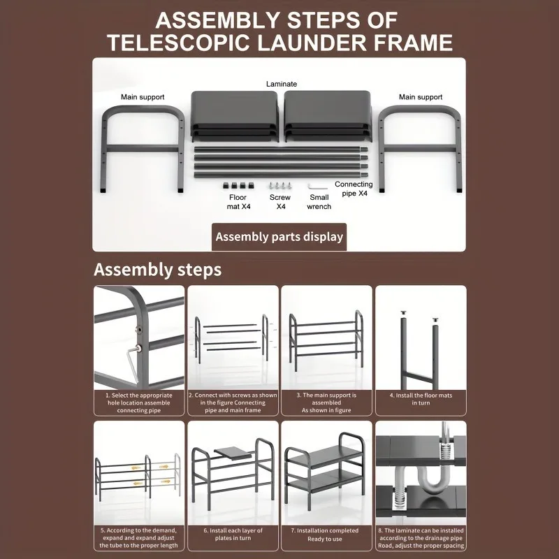 This expandable under-sink organizer is perfect for maximizing storage in kitchens or bathrooms. It fits neatly under sinks to keep items organized and accessible. The adjustable design allows it to expand or contract to fit different cabinet sizes. Its sturdy construction ensures it can hold cleaning supplies, toiletries, or kitchen essentials. The multi-tiered shelves provide ample space for small and medium-sized items. The organizer helps reduce clutter and keeps your space tidy. Assembly is simple and requires no tools. Its neutral design blends seamlessly with any décor. The rack is easy to clean and maintain for daily use. It is ideal for apartments, small homes, or any area with limited storage. The expandable feature allows you to customize the organizer to your needs. This under-sink storage rack combines functionality, durability, and convenience for everyday organization.