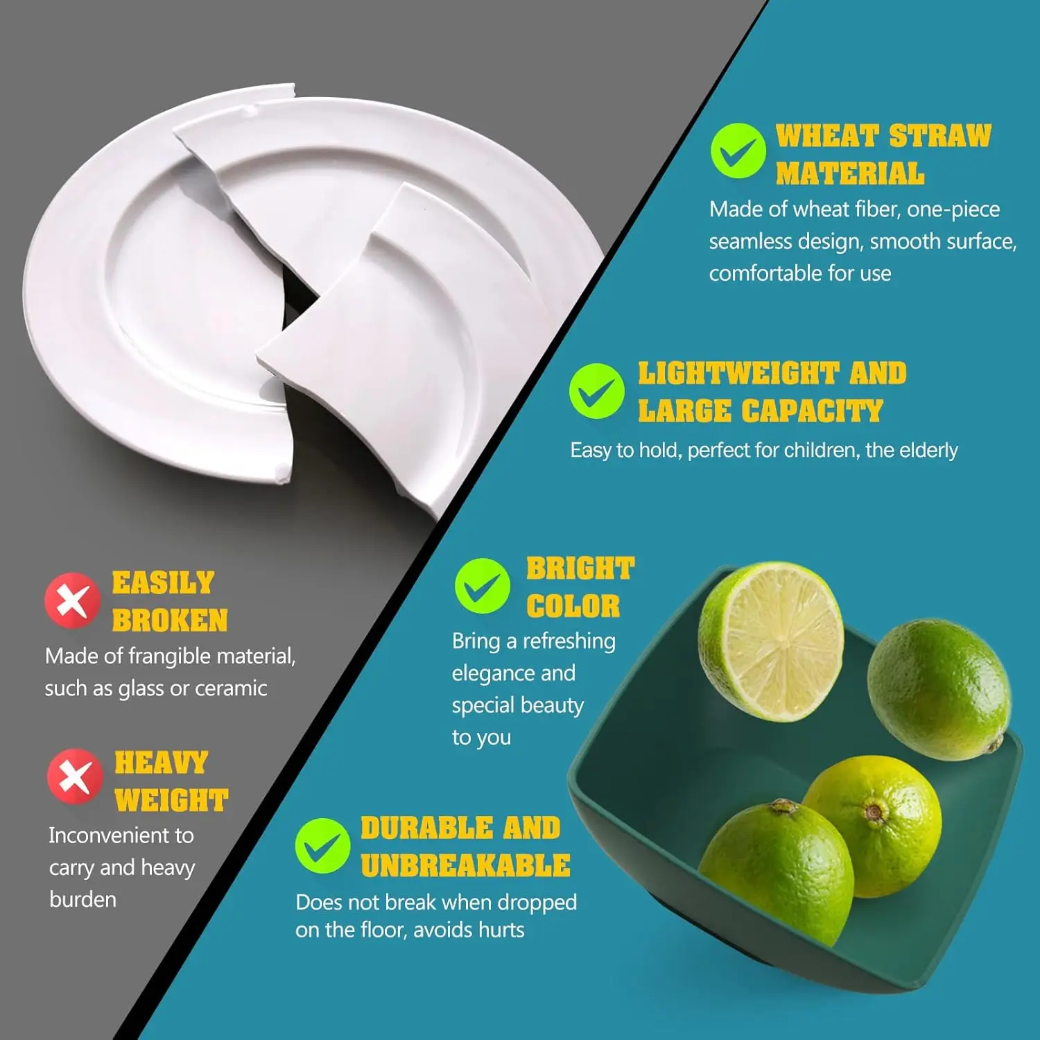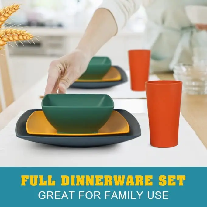 Upgrade your dining experience with this 48-piece kitchen plastic wheat straw dinnerware set for 12 people. The set includes dinner plates, salad plates, snack bowls, and tumblers, offering a complete tableware solution. Made from durable wheat straw plastic, each piece is lightweight, unbreakable, and eco-friendly, perfect for everyday use. Its square design adds a modern and stylish touch to any meal setting. The neutral color complements any kitchen décor and dining style. These dishes are easy to clean and dishwasher safe, saving you time and effort. Ideal for family meals, parties, picnics, or outdoor gatherings. The sturdy construction ensures longevity while resisting chips and cracks. Tumblers are perfect for serving water, juice, or other beverages. Lightweight and stackable, the pieces are convenient to store and transport. This set is great for households, cafeterias, or gifting to friends and family. Bring style, practicality, and sustainability to your dining table with this versatile wheat straw dinnerware set.